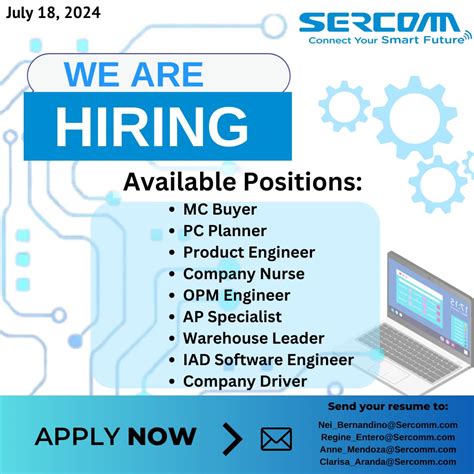 In the fast-paced world of job hunting, staying informed is crucial, especially when you’re targeting a specific company like Synetcom. So, how do you make sure you don’t miss out on any Synetcom Philippines Inc. hiring news? The first and most reliable source is their official website . Most companies have a dedicated ‘Careers’ or ‘Job Opportunities’ section where they post all their current openings. Bookmark this page and check it regularly. It’s often updated first! Secondly, keep an eye on major job portals like LinkedIn, JobStreet, Indeed, and others. Synetcom frequently posts its vacancies on these platforms, making them easily accessible. Set up job alerts for ‘Synetcom Philippines Inc.’ to get notifications directly. Thirdly, follow Synetcom on social media . Companies often announce hiring drives or new positions on platforms like Facebook, LinkedIn, and even Twitter. This is also a great way to get a feel for the company culture and stay updated on company news. Fourth, consider networking . If you know anyone who works at Synetcom, reach out to them! They can provide insights into the company and potentially even refer you for open positions. Referrals can significantly boost your application. Finally, if they have an HR or recruitment email address listed, you might consider sending a speculative application or inquiry, though this is less common for immediate openings. The key here, guys, is consistency. Regularly checking these sources will ensure you’re always in the loop regarding Synetcom Philippines Inc. hiring activities. Don’t wait for the perfect job to appear; be proactive in your search and stay connected. Your next big career opportunity might just be a click away!