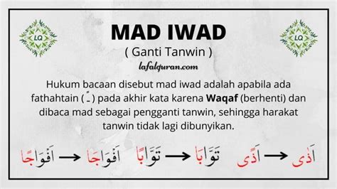 So, Tanwin Iwadh itu sendiri berasal dari kata ‘Iwadh’ yang artinya ganti atau pengganti. Jadi, kalau kita gabungkan dengan ‘Tanwin’, artinya adalah tanwin yang berfungsi sebagai pengganti. Pengganti dari apa dong? Nah, di sini nih serunya! Tanwin Iwadh ini muncul sebagai pengganti dari huruf nun sukun (نْ) atau tanwin (ــًــٍــٌ) yang ada di akhir kalimah, yang bertemu dengan salah satu huruf hijaiyah. Tapi, nggak semua huruf hijaiyah ya, guys. Ada beberapa huruf spesifik yang bikin tanwin itu berubah jadiIwadh. Konsep ini penting banget buat dipahami, karena kalau salah baca, artinya bisa berubah, lho! Tanwin Iwadh ini adalah salah satu dari tiga jenis tanwin yang ada dalam ilmu Tajwid, yaitu Tanwin Fath, Tanwin Kasr, dan Tanwin Damm. Masing-masing punya aturan baca yang beda-beda tergantung harakatnya. Nah, si Iwadh ini paling sering muncul pas kita lagi baca waqaf, yaitu berhenti di akhir ayat atau bacaan. Ketika kita berhenti, biasanya ada perubahan bacaan, dan salah satunya adalah munculnya Tanwin Iwadh ini. Jadi, bisa dibilang Tanwin Iwadh ini adalah cara kita membaca akhir kata ketika kita melakukan waqaf, di mana tanwin yang aslinya ada di huruf terakhir itu diganti bacaannya. Ini bukan cuma soal harakat semata, tapi ada filosofi di balik kenapa bacaan itu diganti. Tujuannya adalah untuk memudahkan pembacaan dan juga menjaga keindahan irama Al-Qur’an. Tanpa aturan seperti Tanwin Iwadh ini, bacaan waqaf bisa jadi terdengar janggal atau bahkan susah diucapkan, apalagi kalau huruf terakhirnya punya harakat tanwin yang berat. Makanya, ilmu Tajwid ini penting banget, guys, buat dapetin bacaan Al-Qur’an yang tartil dan sesuai dengan tuntunan. Dengan memahami Tanwin Iwadh, kita jadi lebih mengerti gimana Al-Qur’an itu dibaca dengan indah dan benar. Intinya, Tanwin Iwadh itu adalah pengganti nun sukun atau tanwin asli yang muncul saat kita waqaf, dan penggantian ini punya aturan khusus yang harus diikuti biar bacaannya sesuai sama kaidah Tajwid. Jadi, jangan cuma hafal harakatnya aja, tapi pahami juga kenapa tanwin itu berubah jadi Iwadh. Ini bakal nambah kedalaman pemahaman kalian soal Al-Qur’an, guys. Keren kan?