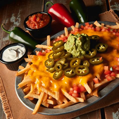 • Layering : When assembling your nachos fries , try layering the ingredients for optimal flavor distribution. Start with the fries, then add the cheese, followed by the protein, and finally, the toppings and sauces.