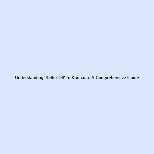 Understanding ‘Better Off’ in Kannada: A Comprehensive Guide