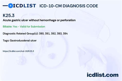 So, what does ICD K25.3 actually stand for? Well, ICD codes are like a universal language for doctors and healthcare professionals around the world. They’re used to classify and track different diseases and health conditions. ICD stands for International Classification of Diseases, and the codes are updated regularly to reflect the latest medical knowledge. The “K” in K25.3 refers to diseases of the digestive system, and “25” specifically points to peptic ulcer. Finally, the “.3” indicates a specific type of peptic ulcer, namely, gastric ulcer with both hemorrhage and perforation . This means there’s a sore or ulcer in your stomach lining (gastric ulcer), and it’s complicated by two serious issues: bleeding (hemorrhage) and a hole in the stomach wall (perforation). Yikes, right?