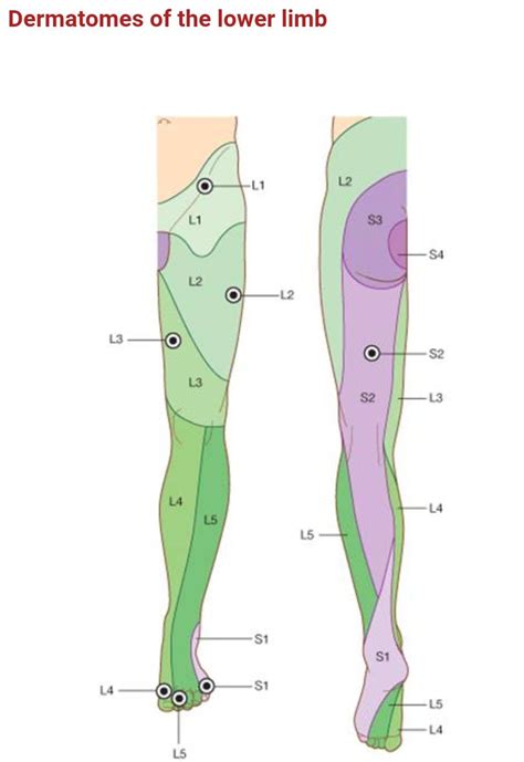 • Peripheral Nerve Entrapment: Nerves can also get pinched further down the leg, and knowing the dermatome can help identify the affected nerve.