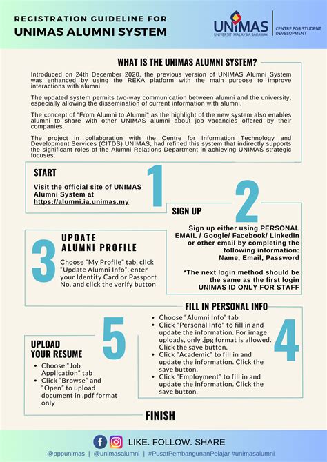 Getting involved with the UNIMAS Alumni Network is super easy, and honestly, super rewarding! We’ve made it simple so everyone can find their own way to participate. First things first, make sure your profile is up-to-date on our alumni portal. This is your digital handshake, so fill it out with your current contact info, career highlights, and what you’re passionate about. The more info you share, the easier it is for others to connect with you! Next up, keep an eye on our events calendar . We host a variety of events – think webinars with industry experts, networking mixers, campus reunions, and even volunteer opportunities. Attending these is a fantastic way to meet fellow alumni, learn new skills, and stay engaged. Don’t be shy, guys; strike up conversations! We also encourage you to share your story . Whether it’s a success story, a lesson learned, or a piece of advice for current students, your experiences are invaluable. You can do this through blog posts, testimonials, or by participating in our mentoring programs. Speaking of mentoring, if you’re interested in guiding the next generation of UNIMAS graduates, sign up to be a mentor. It’s incredibly fulfilling to share your knowledge and see someone else succeed. And hey, if you’re feeling really passionate about giving back, consider joining one of our alumni chapters or committees. Your time and ideas can help shape the future of the network and the university. Even just sharing our posts on social media helps spread the word! Every little bit counts, so find what works for you and jump in. We can’t wait to see you get more involved!