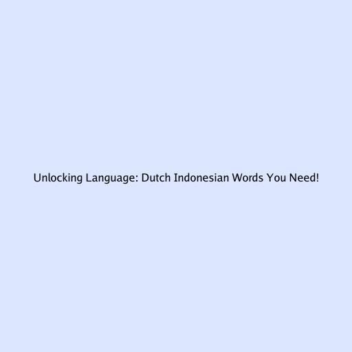 Unlocking Language: Dutch Indonesian Words You Need!