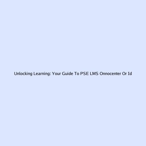 Unlocking Learning: Your Guide To PSE LMS Onnocenter Or Id