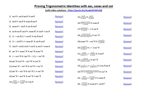 Before we jump into the main proof, let’s brush up on the fundamental trigonometric identities that are going to be our best friends in this adventure. Think of these identities as the secret weapons in our mathematical arsenal. Knowing them is absolutely crucial, like knowing how to hold a pen before you start writing. These identities aren’t just random formulas; they represent the relationships between different trigonometric functions, and they’re the key to unlocking many trigonometric mysteries. Seriously, mastering these identities is like getting a cheat code for trigonometry! The first one we need to know is the reciprocal identity. Remember that sec(b) = 1/cos(b) . The secant function is just the reciprocal of the cosine function. This is super important because it directly links sec(b) to another function, letting us rewrite the expression using cos(b) . The second core identity we should know is the definition of cotangent . We know cot(x) = cos(x) / sin(x) . This tells us that cotangent is the ratio of cosine to sine . In the expression cot(sec(b)) , we can use these identities. First, replace sec(b) with 1/cos(b) . Then, use the definition of cotangent to simplify the expression further. We’ll be using this definition to make substitutions and simplify things along the way. Get familiar with these – they’re the workhorses of this proof!