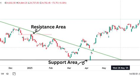 • Trendlines: Trendlines can also act as dynamic resistance levels. By connecting a series of lower highs, you can create a downward-sloping trendline that acts as resistance. This is excellent for identifying potential areas where the price could face selling pressure in a downtrend. Draw a line connecting two or more significant highs to visualize the trend. When the price approaches the trendline, there’s a chance the price might reverse.