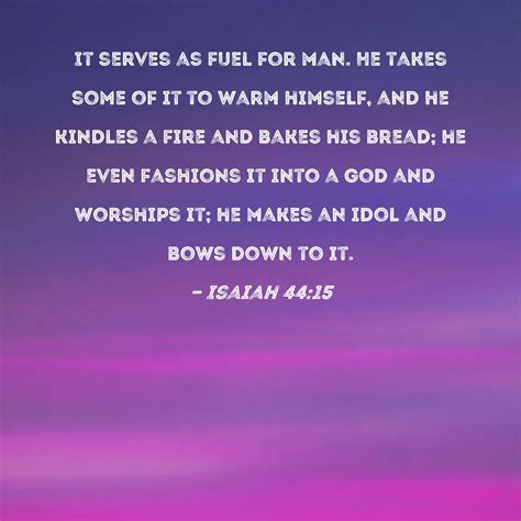 Okay, let’s zoom in on the verse itself. Isaiah 44:15 says, “Then it shall be for a man to burn: for he will take thereof, and warm himself; yea, he kindleth it, and baketh bread; yea, he maketh a god, and worshippeth it; he maketh it a graven image, and falleth down thereto.”