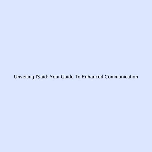 Unveiling ISaid: Your Guide To Enhanced Communication