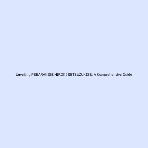 Unveiling PSEARAKISE HIROKI SETSUZUKISE: A Comprehensive Guide