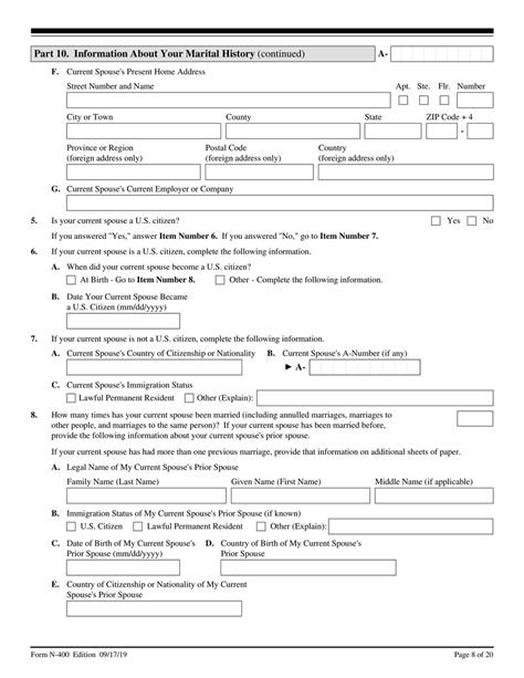 Okay guys, let’s roll up our sleeves and get into the meat and potatoes of the USCIS Form N-400 . This application is divided into several parts, and understanding each one is key to a successful submission. Think of it like building a house – you need a solid foundation for every section. We’ll go through the major parts to give you a clear picture of what USCIS wants to know. First up, we have Part 1: Eligibility Based . Here, you’ll select the eligibility category under which you are applying. This is super important because it determines which other sections of the form you need to complete. Are you applying based on the standard 5-year LPR status, marriage to a U.S. citizen, military service, or another specific category? Choose wisely! Part 2: Personal Information , this is where you provide basic details about yourself, like your full legal name, date of birth, place of birth, current address, and contact information. Be super precise here, especially with names and dates – they need to match your immigration documents exactly! Part 3: Physical Characteristics, Health, and Education , you’ll provide information about your physical attributes (height, weight, eye color, etc.), any disabilities that might affect your ability to take the oath, and your educational background. Part 4: Family Information , this section focuses on your spouse, children, and parents. You’ll need to provide information about your current spouse, any previous marriages, and details about your children and parents, including their immigration status if they are living in the U.S. This part is crucial for verifying your family ties and ensuring you meet certain requirements. Part 5:usetts Residence and Employment History , this is a big one! You’ll list all the places you’ve lived and all the jobs you’ve held for the past five years (or three years if you’re applying based on marriage to a U.S. citizen). Be thorough and accurate – USCIS will verify this information. Make sure you account for every period. Part 6: Ineligibility Questions , this is where USCIS asks a series of questions designed to determine if you might be ineligible for naturalization. These questions cover things like criminal history, past immigration violations, and adherence to U.S. laws. It’s critical to answer these questions truthfully. Don’t try to hide anything, guys. If you have a past issue, it’s better to disclose it and explain it properly. Part 7: Applicant’s Statement, Signature, and Contact Information , here you’ll affirm that everything you’ve stated is true and correct. You’ll sign and date the form. There are also sections for your attorney or accredited representative if you have one. Finally, Part 8: Fingerprint and Other Information , this is usually completed during your biometrics appointment. So, take your time with each section. Double-check everything. It’s better to spend extra time ensuring accuracy now than dealing with delays later. We’ve got your back as you work through this!
