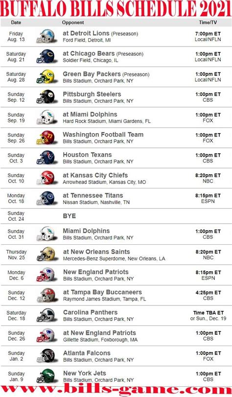 For all you dedicated Bills fans out there, keeping track of important dates and times for Bills games is like a religion. The NFL season is a marathon, not a sprint, and each game is a crucial chapter. You’ve got your standard Sunday afternoon games, often starting at 1 PM ET or 4:05 PM ET/4:25 PM ET, which are broadcast regionally or nationally depending on the matchup. Then there are the marquee matchups: Sunday Night Football on NBC, typically with an 8:20 PM ET kickoff, and Monday Night Football on ESPN, usually starting at 8:15 PM ET. These primetime games are often the most highly anticipated. Don’t forget about Thursday Night Football, which has seen its broadcast home shift, but is often on Amazon Prime Video or sometimes FOX/NFL Network, usually with an 8:15 PM ET start. Later in the season, you might see Saturday games added to the schedule. Beyond the regular season, playoff game times can vary wildly, often announced with less lead time but usually falling into similar Sunday, Monday, or Saturday slots. Following the Buffalo Bills game live now also means being aware of bye weeks, where the team rests, and important schedule changes due to holidays or other events. Your best bet? Bookmark the official Buffalo Bills schedule on their website or the NFL’s website. Many fan sites and sports apps also provide detailed, up-to-date schedules. Setting calendar alerts for game days is a smart move. Remember, these times are usually listed in ET, so adjust accordingly for your local time zone. Being prepared with the schedule ensures you’re locked in and ready to cheer on the Bills from the opening kickoff!