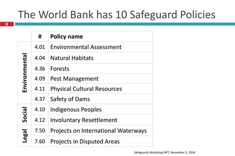 For borrowing countries (that’s the countries receiving the loans or grants), these policies set the minimum standards for environmental and social management. By understanding the requirements outlined in the World Bank Safeguards Policies PDF , governments can better design and implement projects that are not only financially viable but also sustainable and socially equitable. It helps them build capacity in their own institutions to manage environmental and social risks, leading to better development outcomes in the long run. It’s about good governance and responsible stewardship of resources.